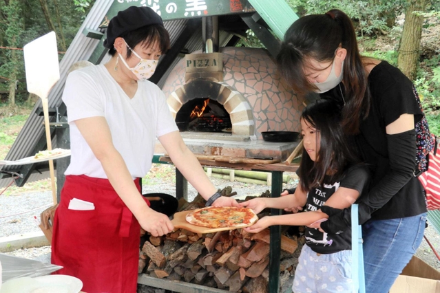 鍬渓温泉の3周年祝う「マルシェ」 市民団体が350人にピザ提供 小野