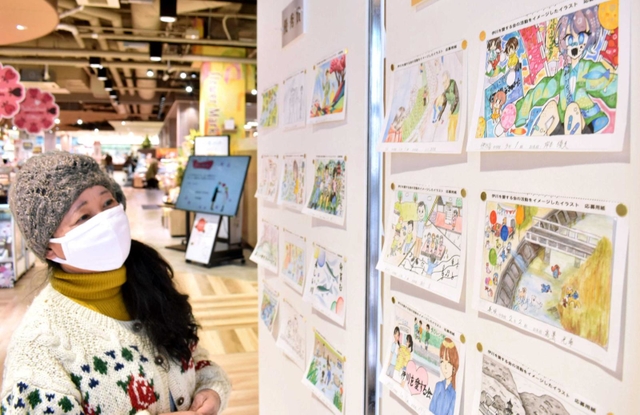 神戸市西区を流れる伊川をテーマに、地元の中学生875人が描いたイラスト展が、同区池上3のコープデイズ神戸西で開かれている。コロナ禍でイベントの中止が相次