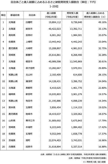 『ふるさと納税分析レポート』令和2年度ふるさと納税寄付額が歳入額に占める割合を … – PR TIMES