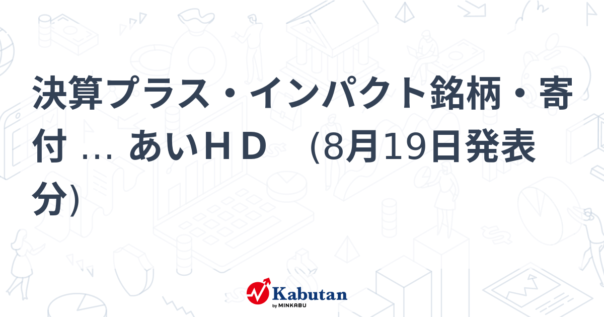 - 【特集】決算プラス・インパクト銘柄・寄付 … あいHD (8月19日発表分) - 株探(かぶたん)
