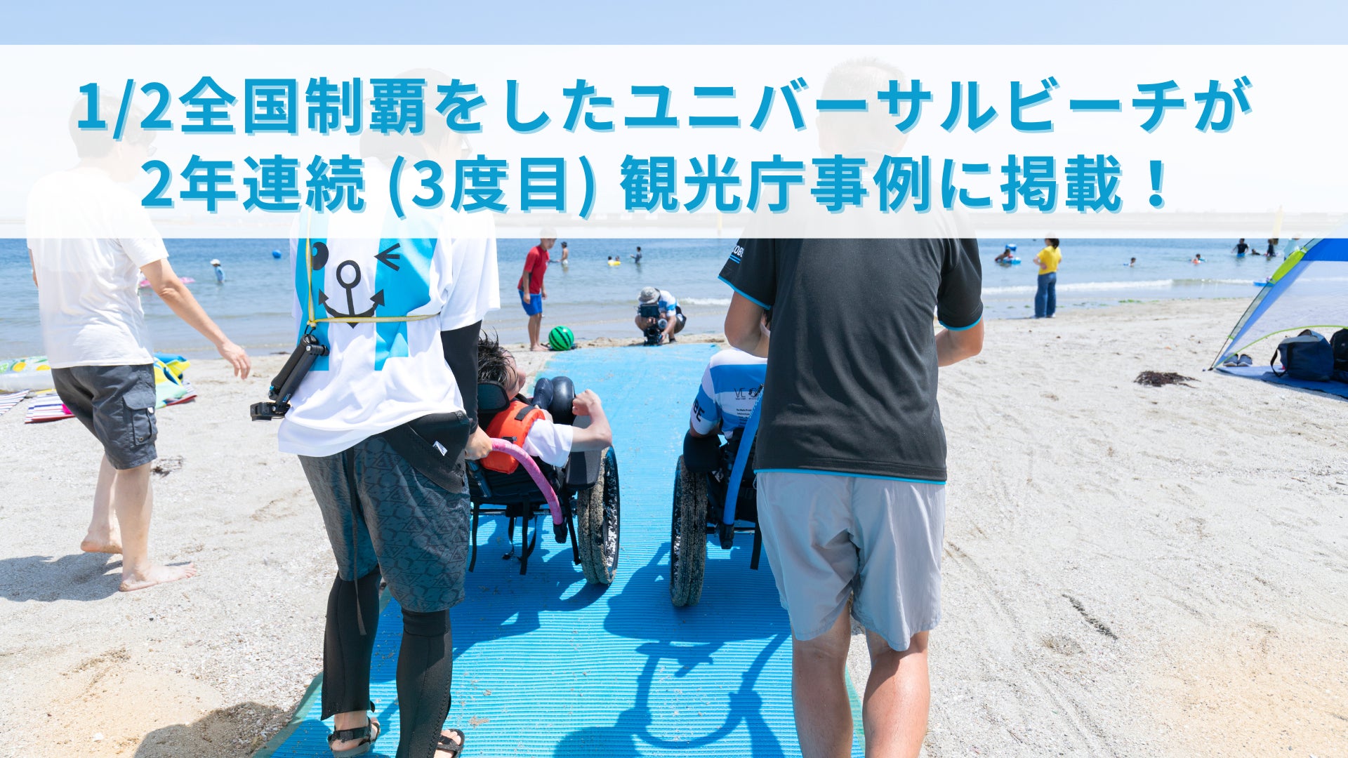 - 1/2全国制覇をしたユニバーサルビーチが2年連続(3度目)観光庁事例に掲載。海のバリアフリー化で