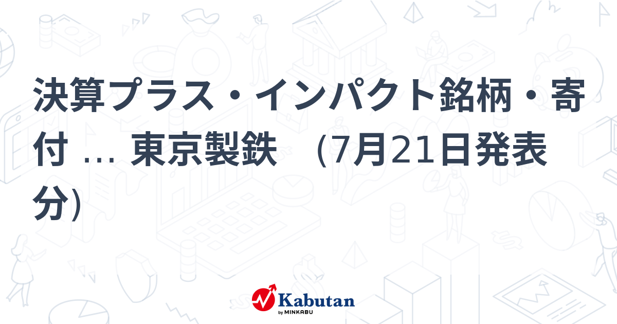 決算プラス・インパクト銘柄・寄付 … 東京製鉄 (7月21日発表分) | 特集 - 株探ニュース