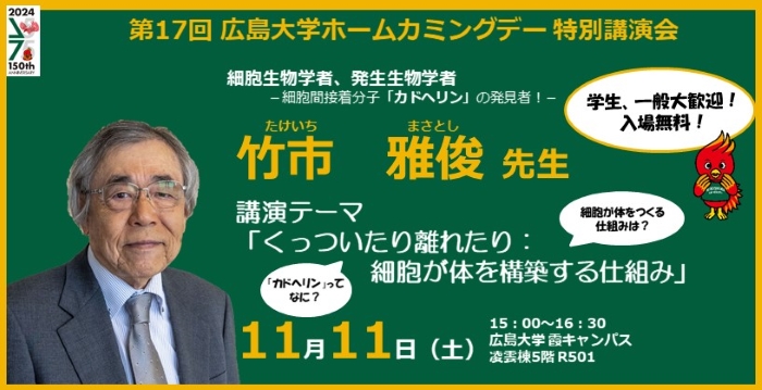 [75]【2023/11/11開催・霞キャンパス・要申込】第17回広島大学ホームカミングデー 霞部局合同企画 特別講演会を開催します