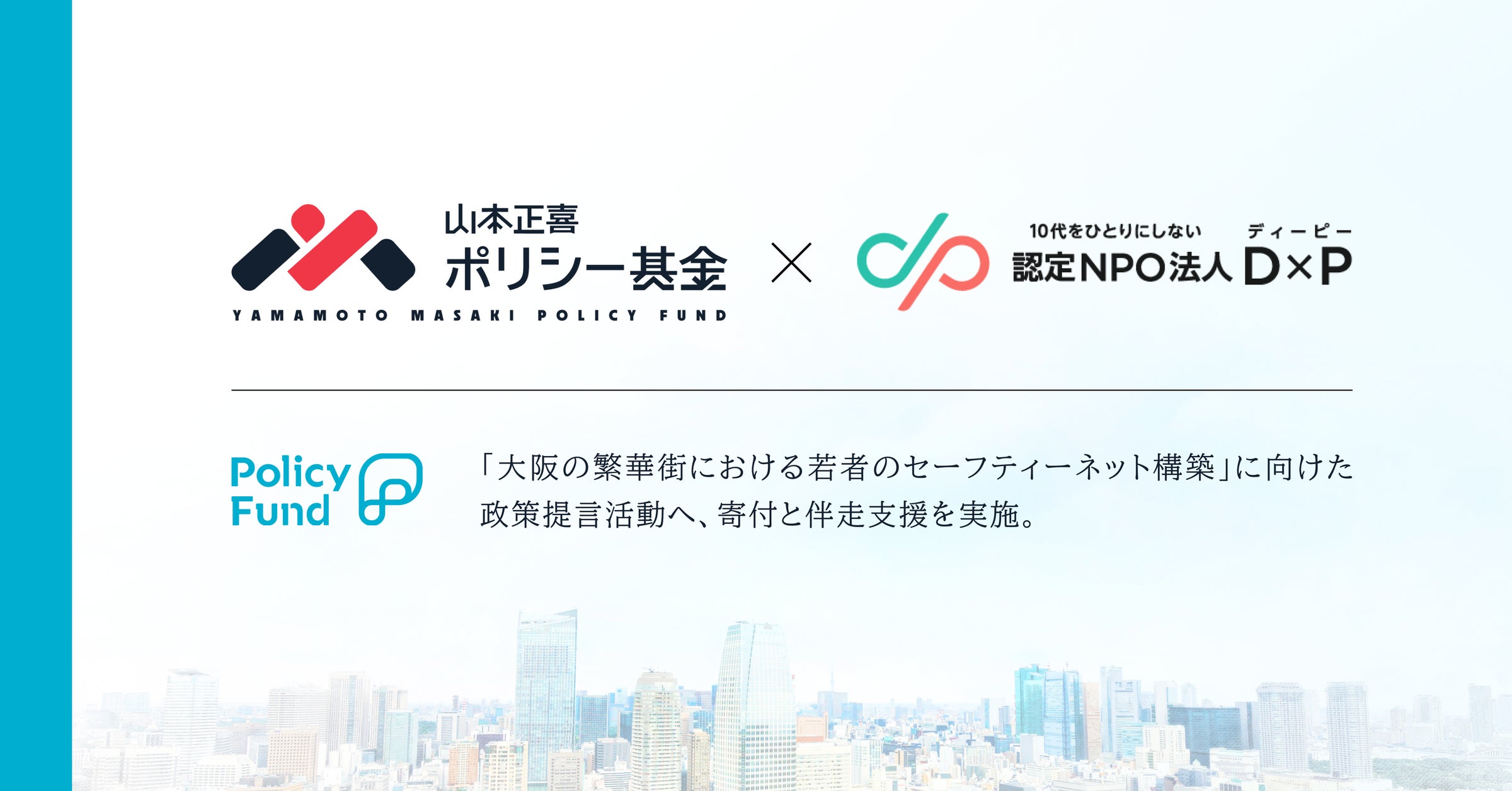 - 10代をひとりにしない。Policy Fundの「山本正喜ポリシー基金」、認定NPO法人D×Pに寄付決定