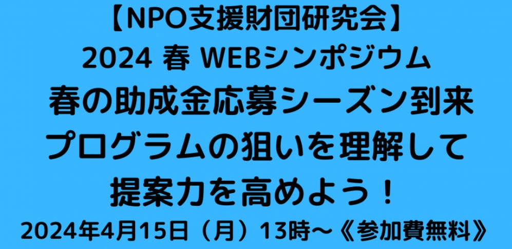 - 【NPO支援財団研究会 2024春 WEBシンポジウム】「春の助成金応募シーズン到来。プログラムの ...