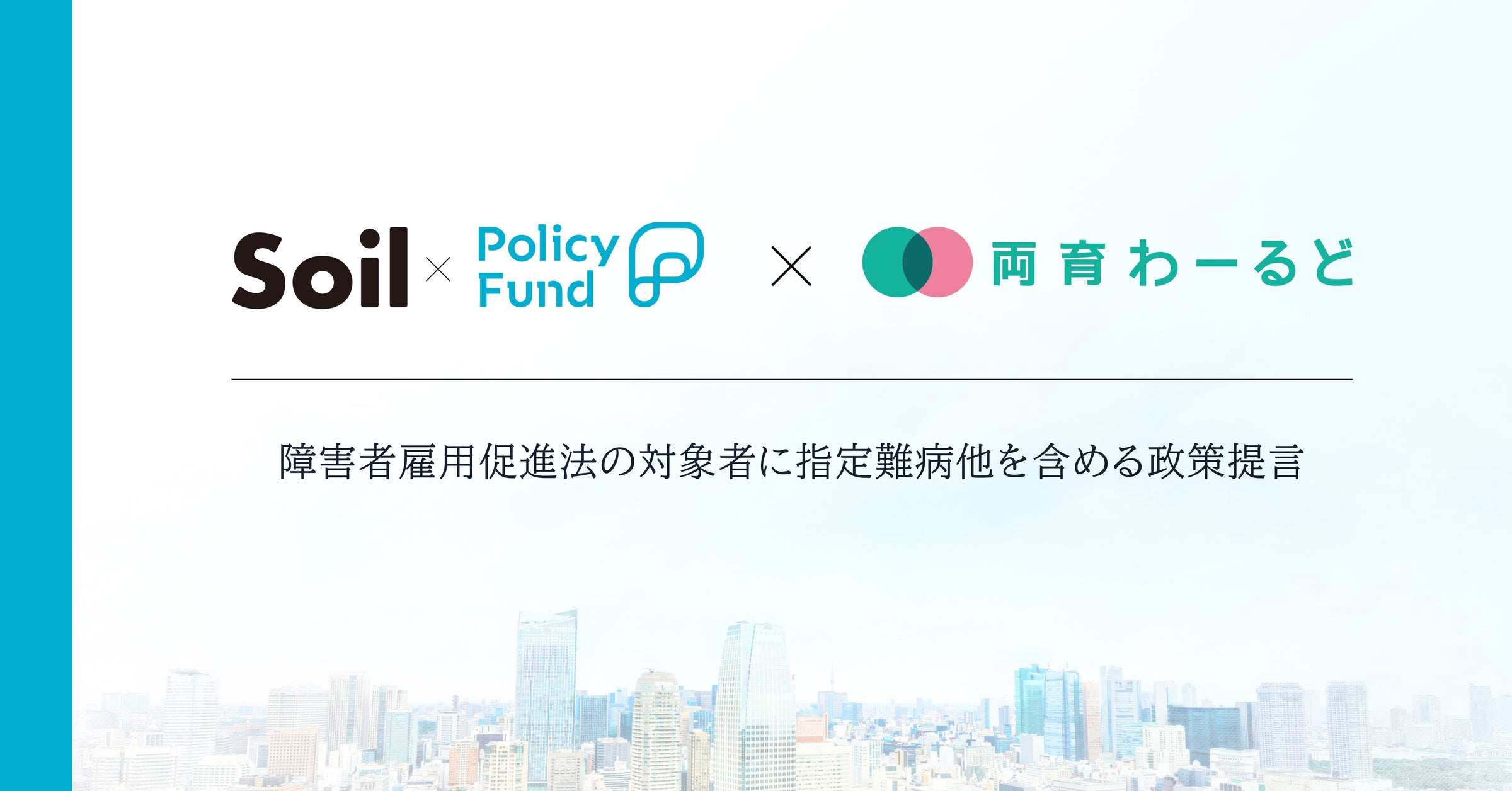 難病者が働きやすい社会を。「SoilxPolicy Fund」基金、NPO法人両育わーるどに支援決定