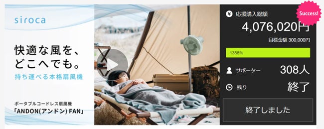 クラウドファンディングで目標金額の1,358%を達成!快適な風をどこへでも持ち運べる …