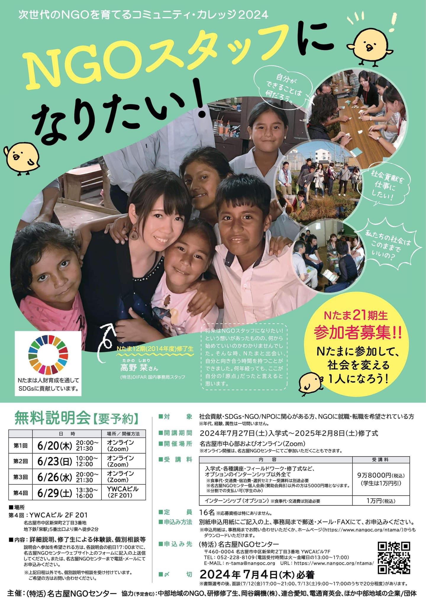 国際協力・子ども食堂・コミュニティづくり、NPO活動も多岐に渡ります。私が受講したのは、もう8年前になってしまった! 無料説明会ZOOM orリアル会場があります。6/20 20:00オンライン6/23 10:00オンライン6/26 20:00オンライン6/29 13:30 YECAビル(名古屋市リアル会場)詳しくは!