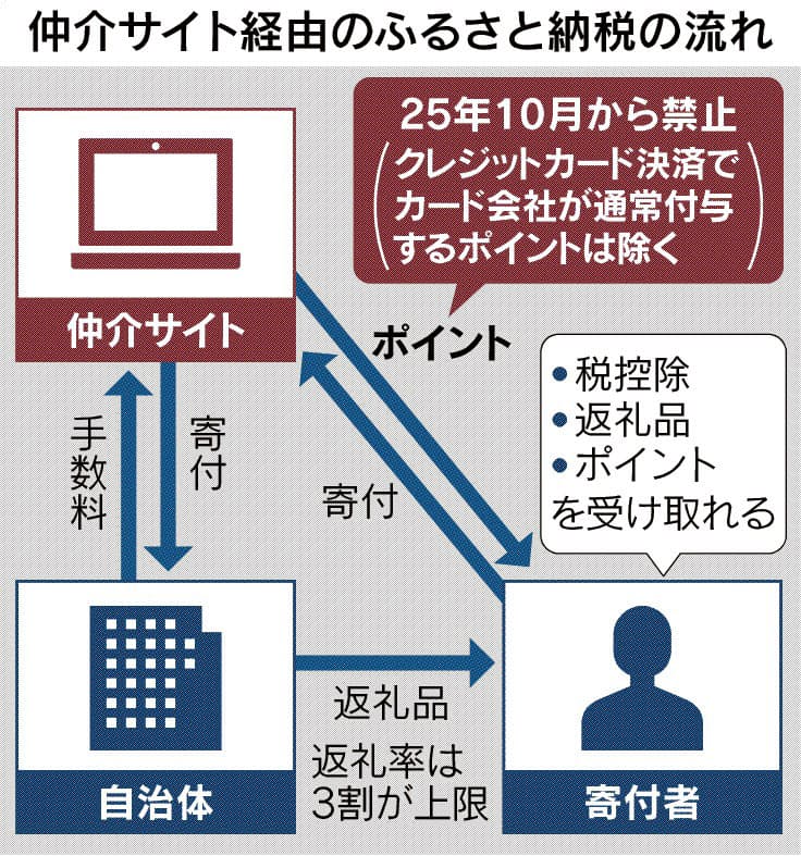 - ふるさと納税、ポイント付与禁止 サイト間競争の転換迫る 寄付1兆円、膨らむ手数料