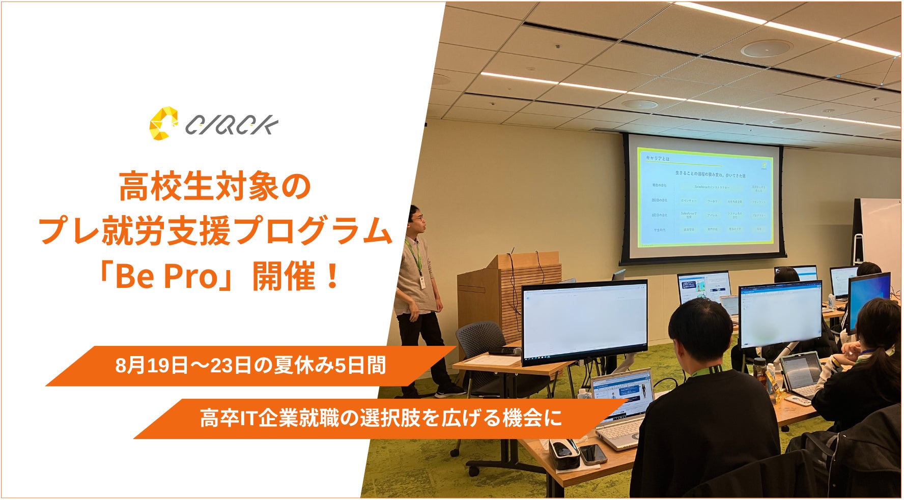 認定NPO法人CLACK、高校生対象プレ就労支援プログラム「Be Pro」8月19〜23日に開催決定。〜高卒IT企業就職の選択肢を広げる〜