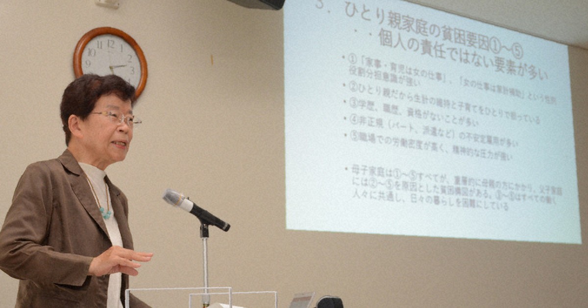 新型コロナウイルス禍や物価高で困窮するひとり親の現状を知ってもらう講演会が17日、福岡市中央区の市人権啓発センターであった。同区のNPO法人「しんぐるまざあず・ふぉーらむ・福岡」の大戸はるみ理事長が講演した。