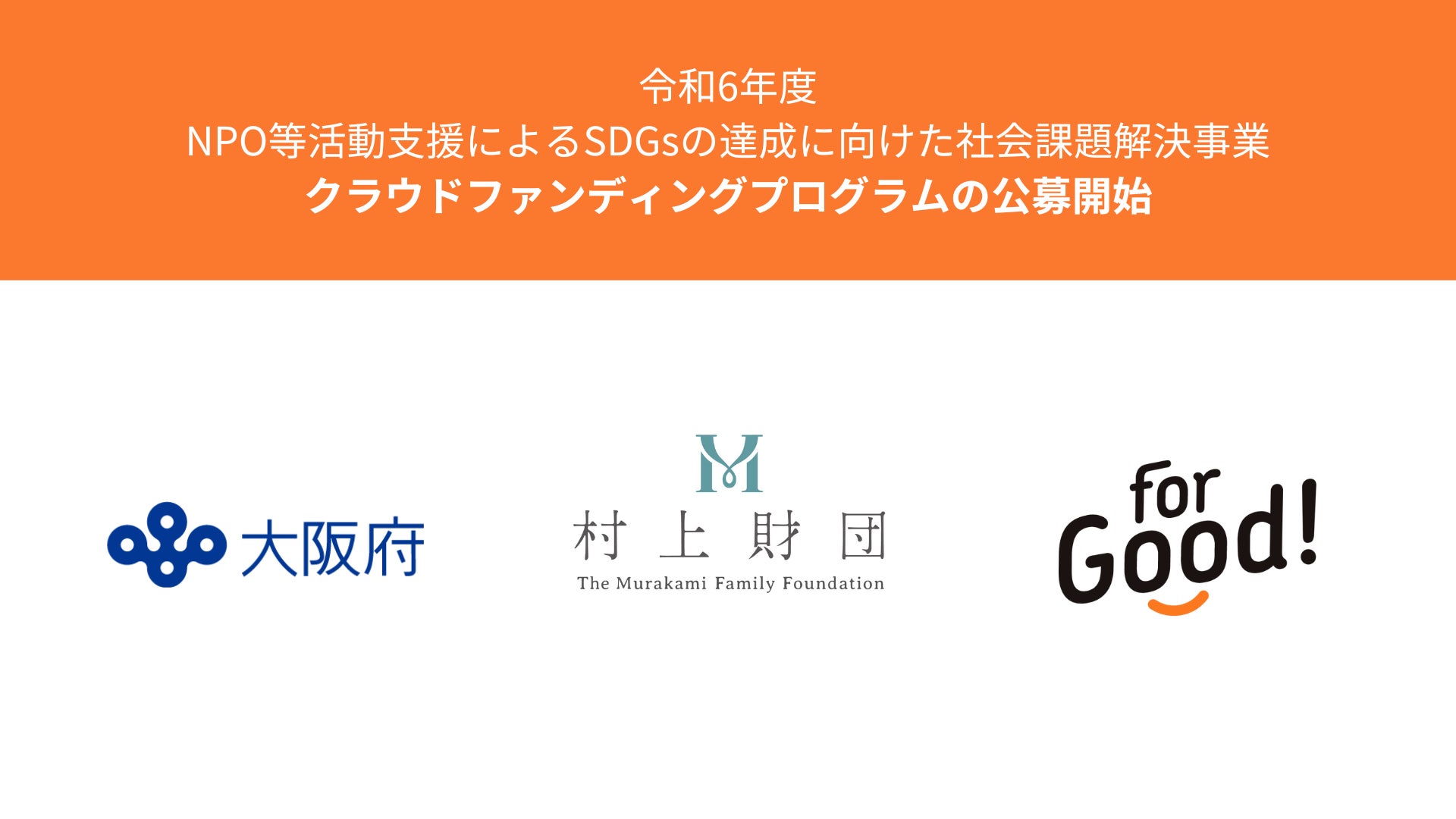 大阪府と村上財団による「NPO等活動支援によるSDGsの達成に向けた社会課題解決事業 …