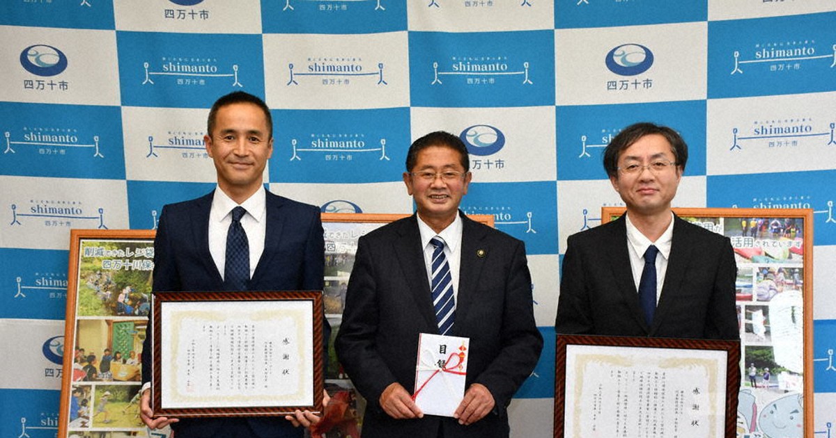 寄付金は四万十川市民一斉清掃などの清流保全の活動や、市内小中学生や園児の環境学習の支援などに使われている。 寄付を受け取った中平正宏四万十 …