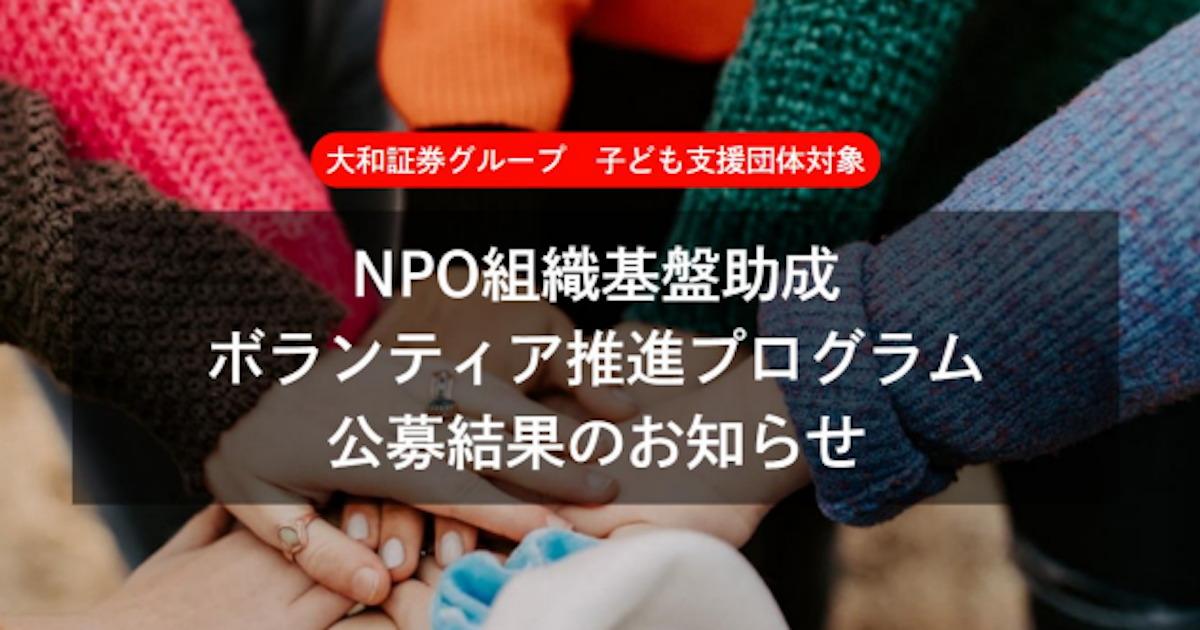 - 大和証G(8601) ボランティア推進に特化したNPO向け助成プログラム大和証券グループ「NPO組織 ...