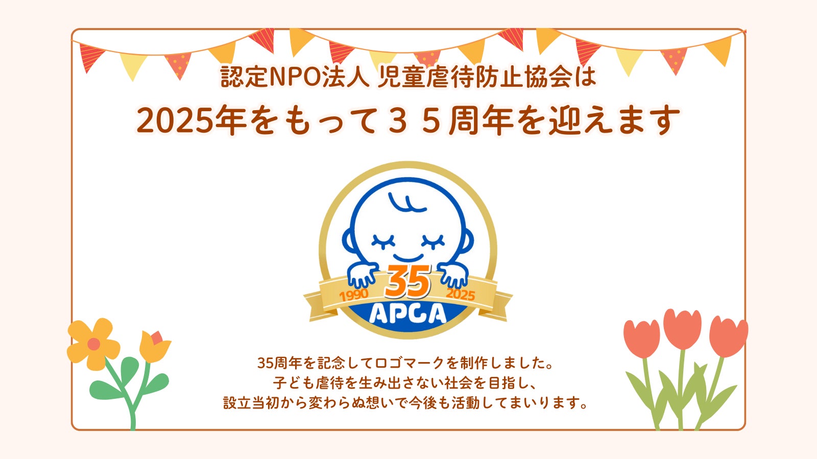 - 認定NPO法人児童虐待防止協会35周年のご挨拶、周年記念新ロゴマークデザインのお知らせ