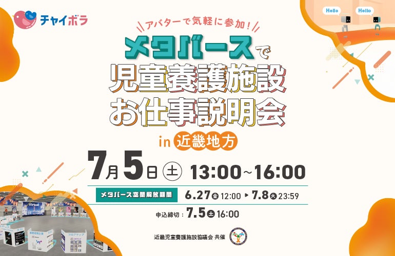 近畿児童養護施設協議会と共催で近畿地方特化型のメタバース合同説明会を初開催. NPO法人チャイボラ. 2025年6月17日 15時00分.
