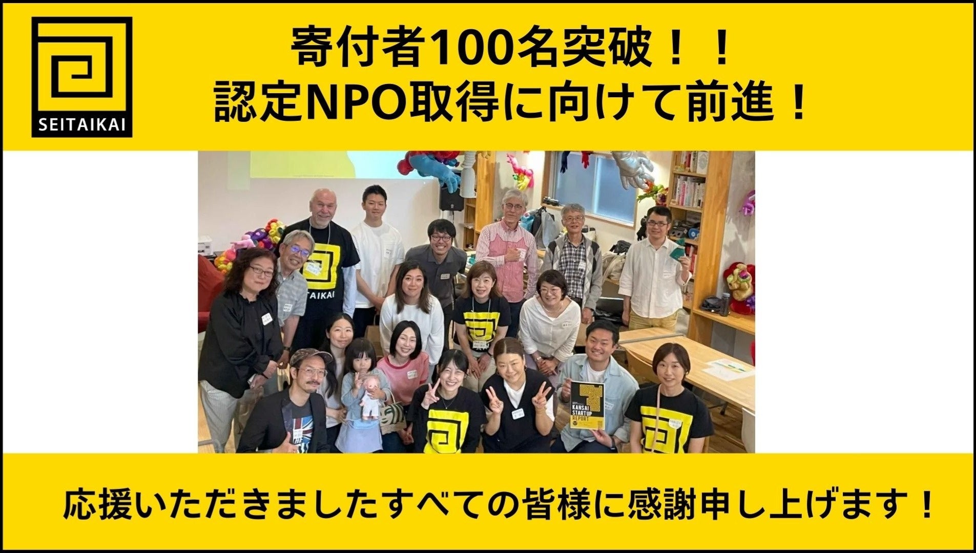 関西スタートアップを支えるNPO法人生態会が、寄付者100名達成!