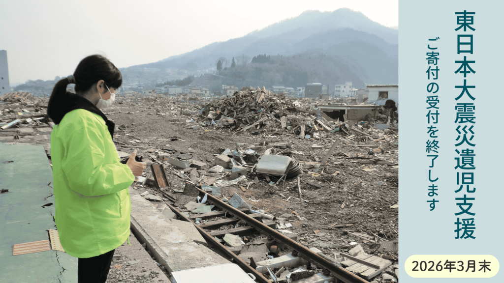 あしなが育英会は、2026年3月31日(火)をもって「あしなが東日本大震災遺児支援募金」のご寄付の受付を終了することにいたしました。東日本大震災遺児の支援 …
