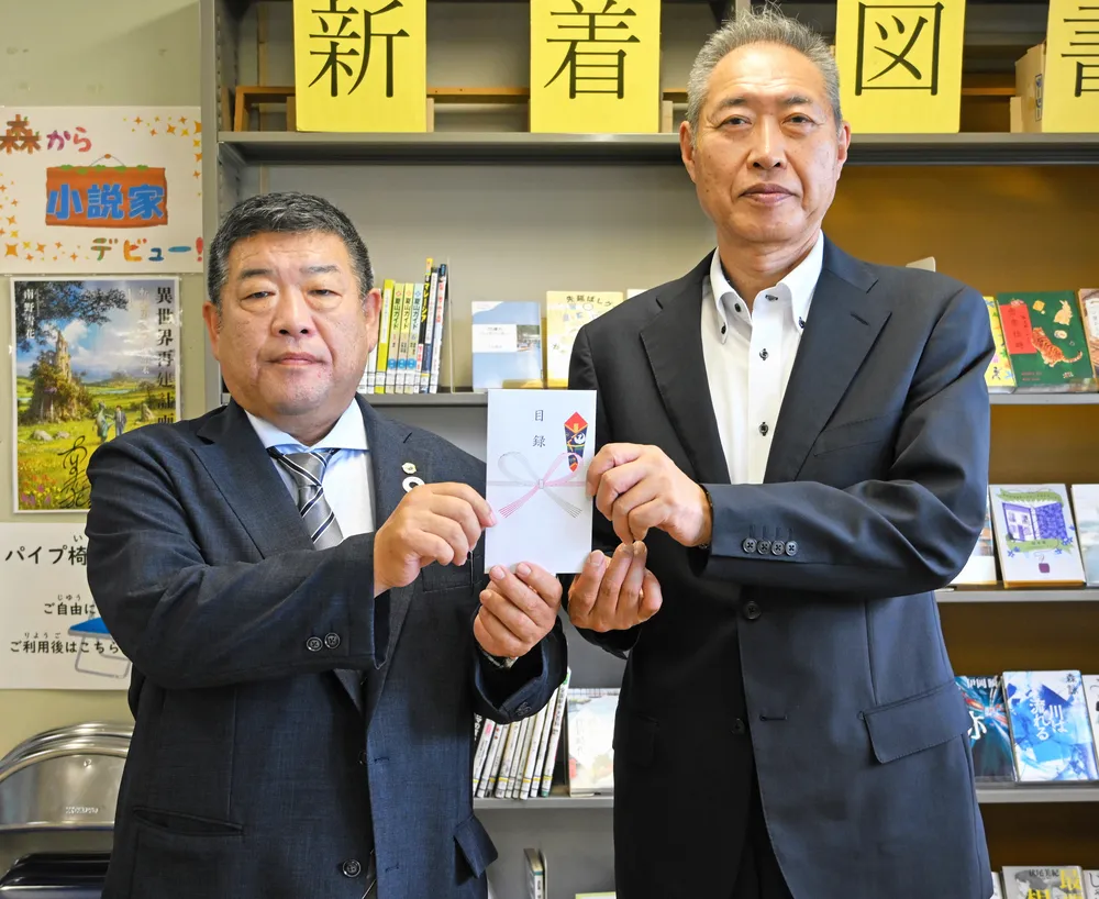 【森】森ライオンズクラブ(角田博光会長)は、図書購入費として10万円を町図書館に寄付した。…