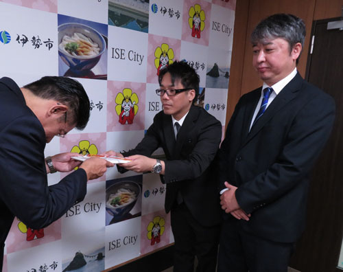 同市への寄付は、令和5年から続け、3回目。 市役所に、同社が運営するパチンコ店「グランワールドカップ伊勢店」(同市西豊浜町)の店長西澤邦彦さん(49) …