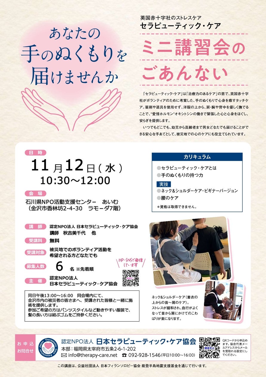 手のぬくもりで心身を癒す英国赤十字社のケア「セラピューティック・ケア」 – PR TIMES