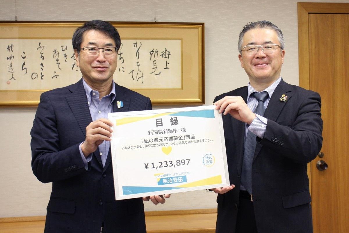 - 明治安田生命保険新潟支社、「私の地元応援募金」123万円を新潟市に寄付 健康づくりに役立てて