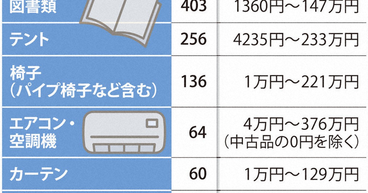 PTAから学校に対する寄付について毎日新聞が政令市や中核市など計109自治体にアンケートしたところ、2024年度に94自治体に4508件、総額5億9414万円相当の寄付がされていたことが判明した。ただし、実態を把握していない自治体が八つあり、実際にはより多くの寄付があるとみられる。図書やテントなど