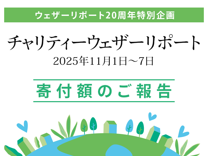 2025年11月1日〜7日に開催した「チャリティー ウェザーリポート」の寄付総額が確定しましたので、ご報告いたします。