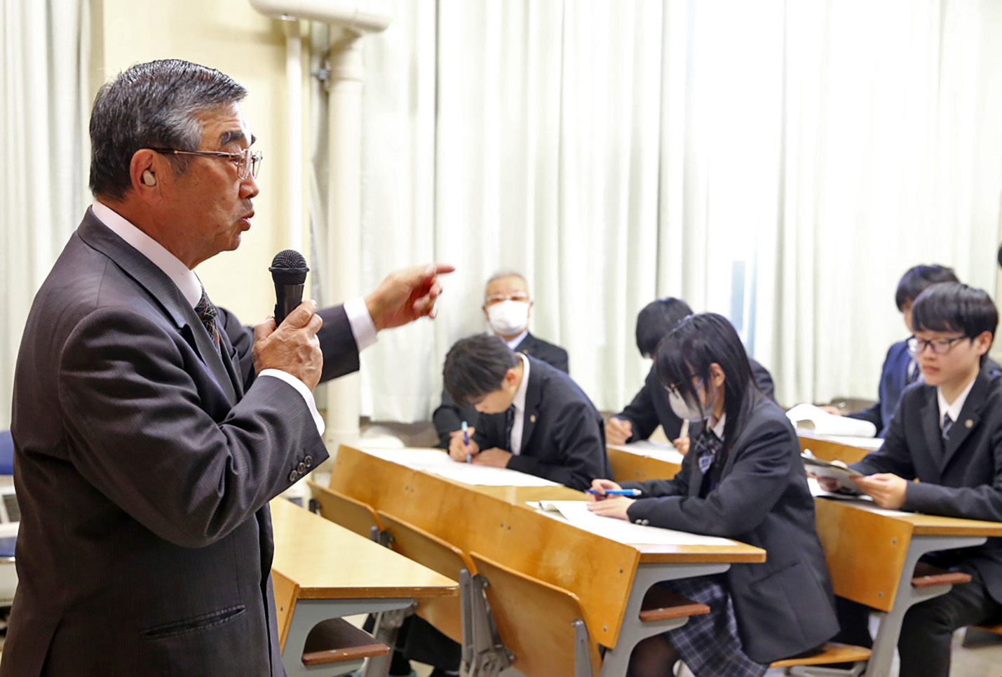 南郷高OBで同窓会顧問の佐々木慶一郎さん(78)=石巻市北村=が13日、母校で講演した。戦前、同校卒業生ら旧南郷村(現美里町)の村民が旧満州(現中国東北部)に入植し、敗戦であえない最期を遂げた悲劇に触れ、平和の尊さを訴えた。佐々木さんは元女川高校長で、南郷高同窓会長も務めた。60年間、計3000万円を投じて戦争に関する資料約4000点を収集し、自宅に併設する「平和資料館」に展示、無償で公開している。