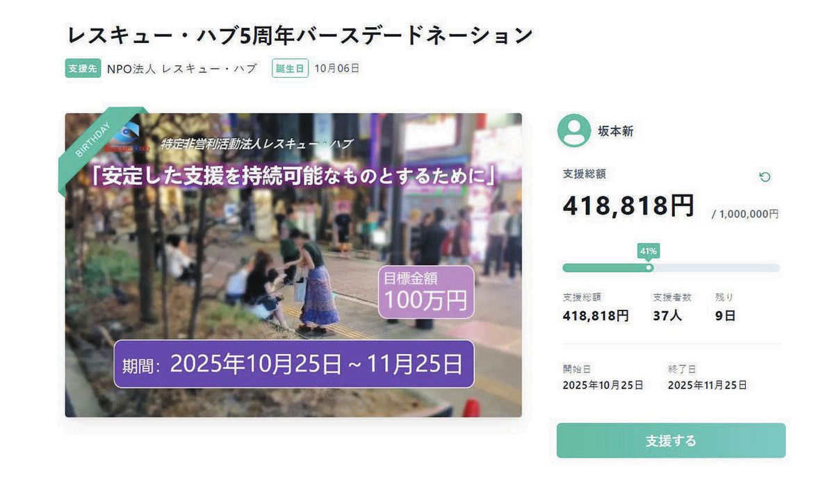東京・歌舞伎町などで性産業に従事する女性を支援するNPO法人「レスキュー・ハブ」がクラウドファンディング(CF)で運営資金を募っている...