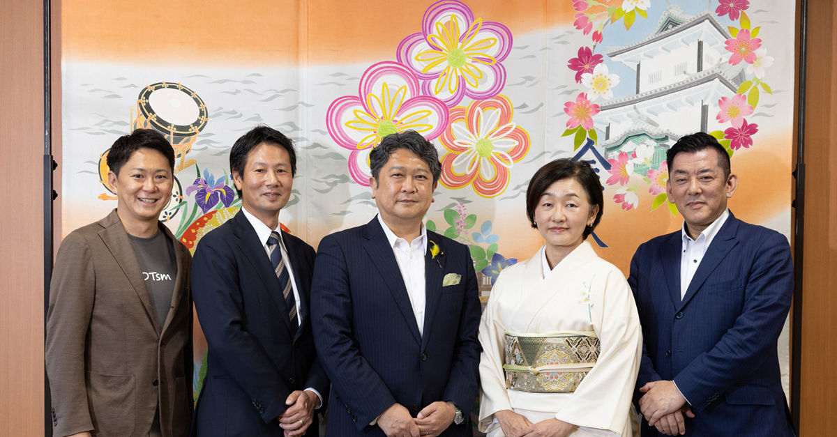 デロイト トーマツ グループ 税務・法務領域ビジネスリーダー 溝口史子、有限責任監査法人トーマツ アシュアランス事業本部長 山本大、そして金沢発の二社――デロイト トーマツ smooth 代表取締役社長 中野祐希、デロイト トーマツ アリーナ 代表取締役社長 花尾正人が、村山卓・金沢市長を訪れた。