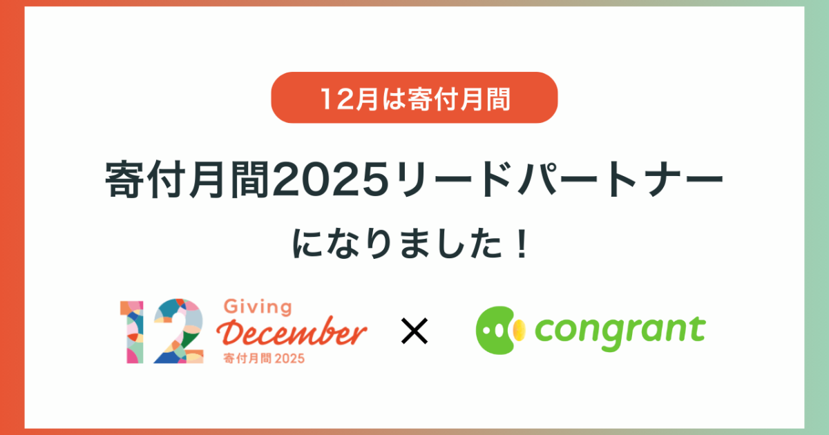 寄付月間(Giving December)とは、NPO、大学、企業、行政などで寄付に関わる関係者が幅広く集い、寄付が人々の幸せを生み出す社会をつくるために協働で …