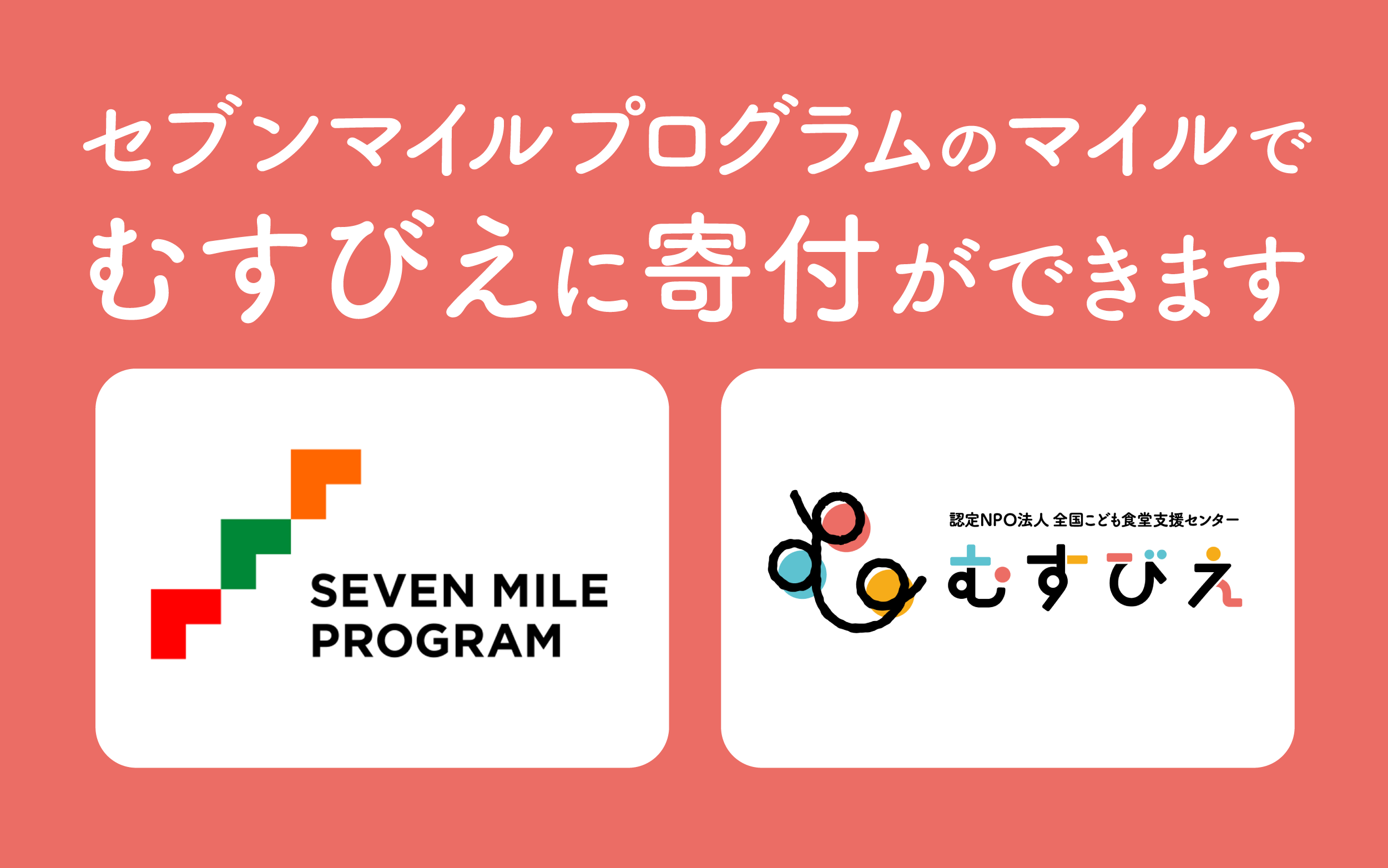 - 【お知らせ】セブンマイルプログラムのマイルでむすびえに寄付ができます
