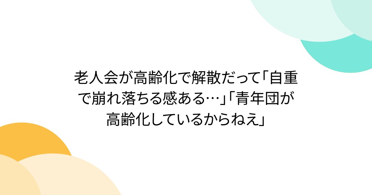 老人会が高齢化で解散だって「自重で崩れ落ちる感ある…」「青年団が高齢化しているからねえ」