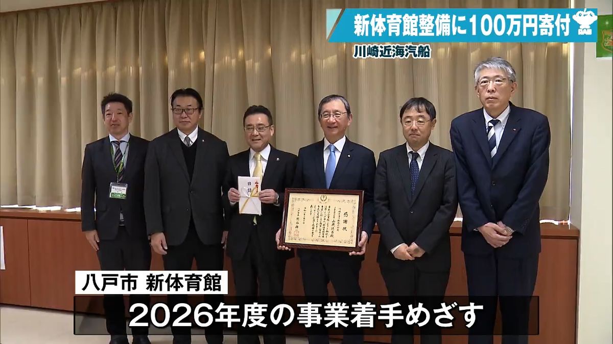 - 川崎近海汽船が八戸市に100万円寄付 来年度着手の「新体育館整備」を支援