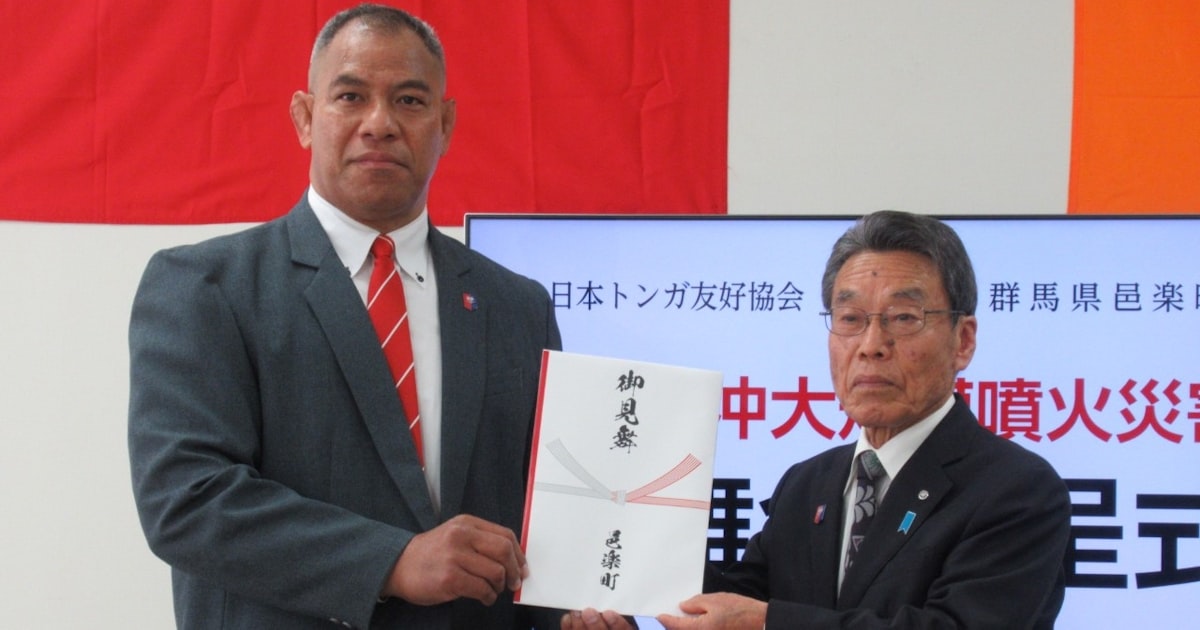 - 群馬・邑楽町、日本トンガ友好協会に見舞金100万円寄付