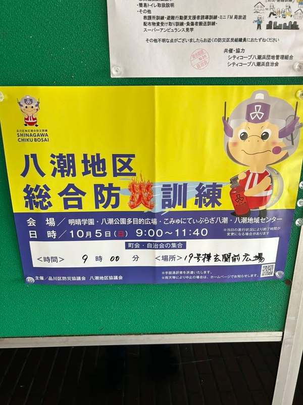 まずは、自治会でフロアー責任者による全住民安否確認を行い、避難指定場所への避難訓練です。 ・応急手当訓練 AED他・簡易トイレ取扱い説明・家具転倒防止器具 …