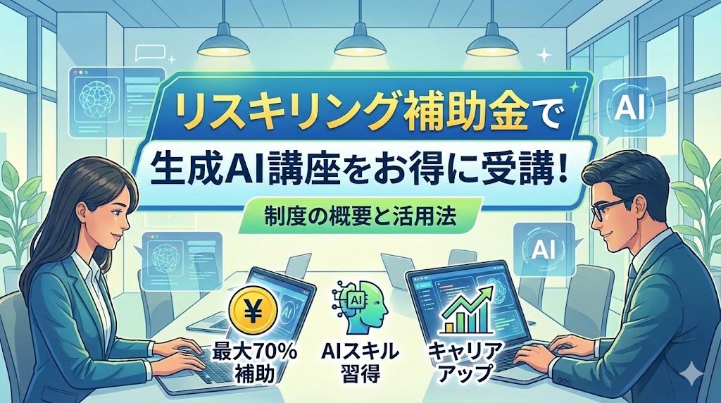 生成AI(ジェネレーティブAI)の技術が日々進歩し、AIリスキリング講座で新たなスキルを学び直そうとする人が増えています。とはいえ、本格的なAI講座の受講には高額な費用がかかることも多く、そこで注目されているのがリスキリング補助金です。国や