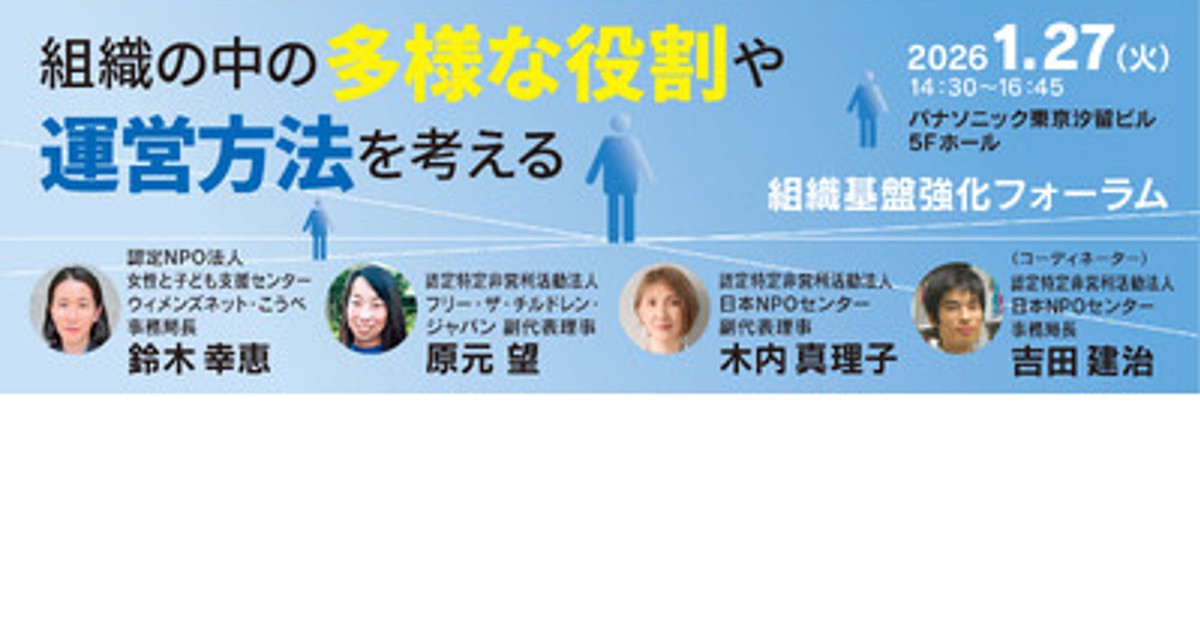 特定非営利活動法人 日本NPOセンターのプレスリリース(2025年12月16日 14時25分)1/27「組織基盤強化フォーラム」をパナソニック ホールディングス株式会社と共催