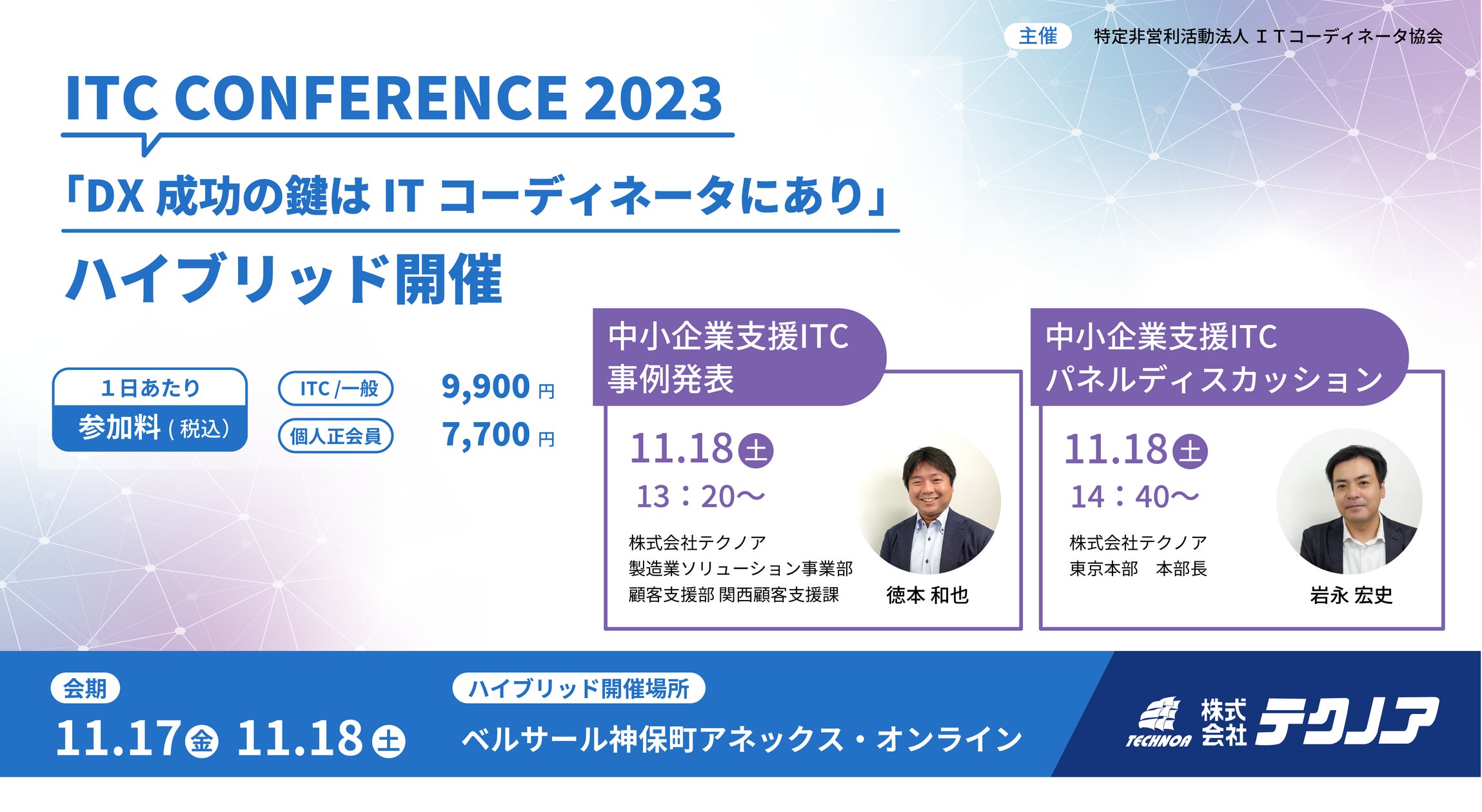 株式会社テクノアのプレスリリース(2023年11月7日 17時10分)【生産管理とDXのテクノア】NPO法人ITコーディネータ協会主催の「ITC CONFERENCE 2023」に登壇 …